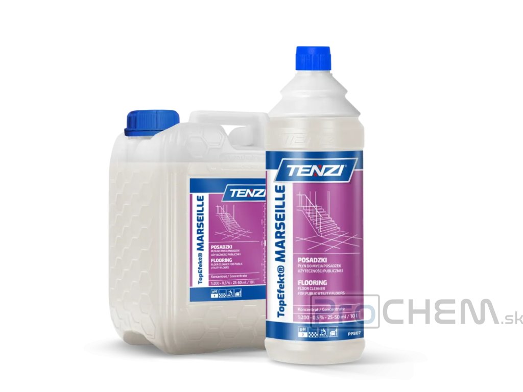 TOP EFEKT MARSEILLE je profesionálny čistiaci prípravok s autentickou vôňou marseillského mydla, ktorý neobsahuje pravé marseillské mydlo, ale využíva moderné a účinné tenzidy zabezpečujúce dôkladné, šetrné a praktické čistenie podláh.
